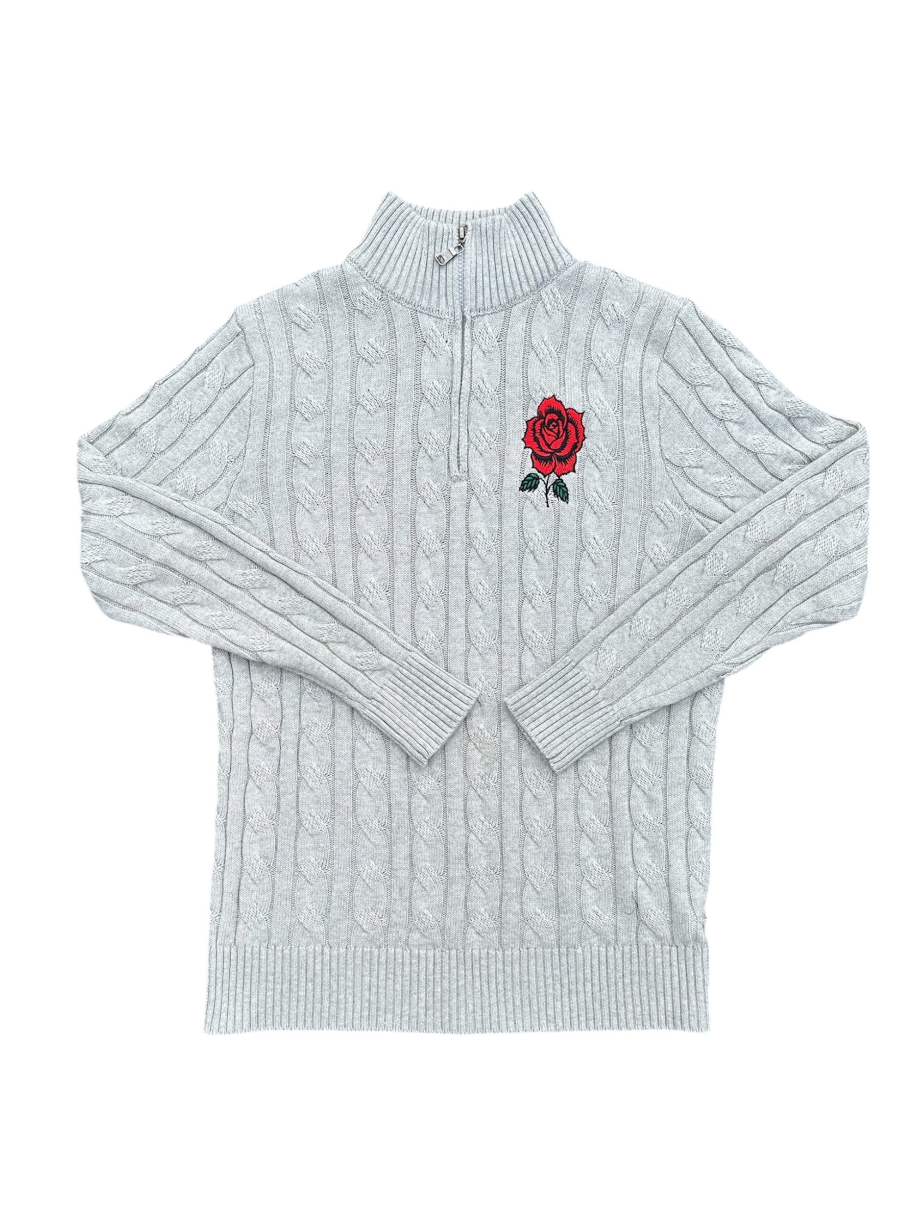 Stay effortlessly stylish with the Silver Rose Half-Zip Sweatshirt. Crafted from 100% premium cotton, this light grey knit offers the perfect balance of breathability and warmth. The sleek half-zip design adds versatility, letting you adjust for comfort and style. Ribbed cuffs and hem ensure a snug fit, making it ideal for layering or wearing on its own. To complete the look, an embroidered rose logo adorns the chest, adding a subtle yet elegant touch. A must-have for those who love timeless comfort with a modern edge.